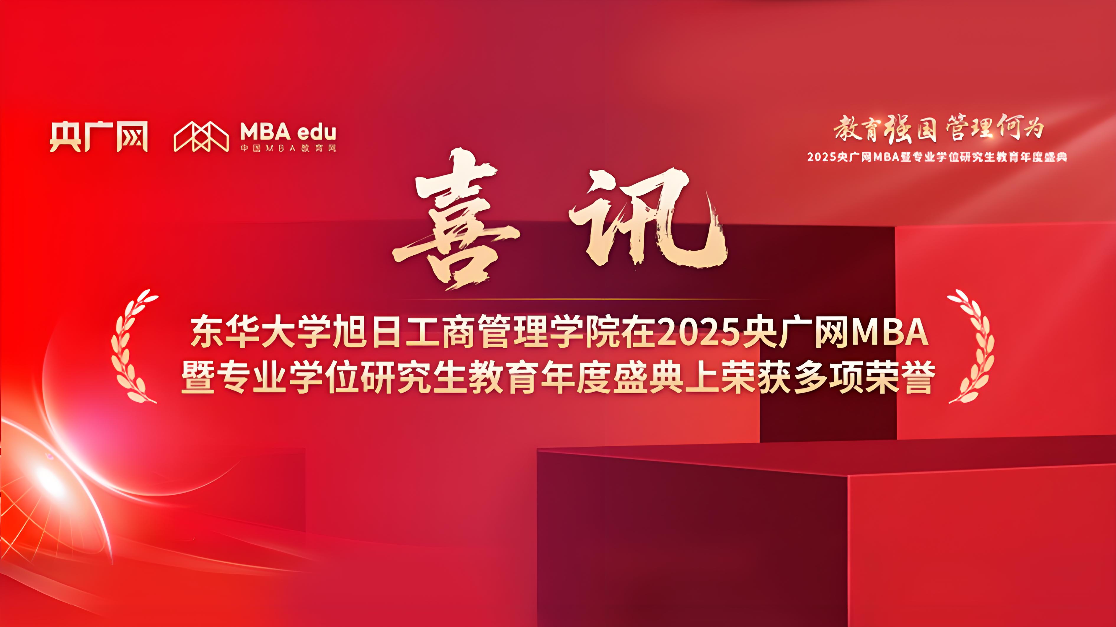 喜讯丨东华大学旭日工商管理学院在2025央广网MBA暨专业学位研究生教育年度盛典上荣获多项荣誉