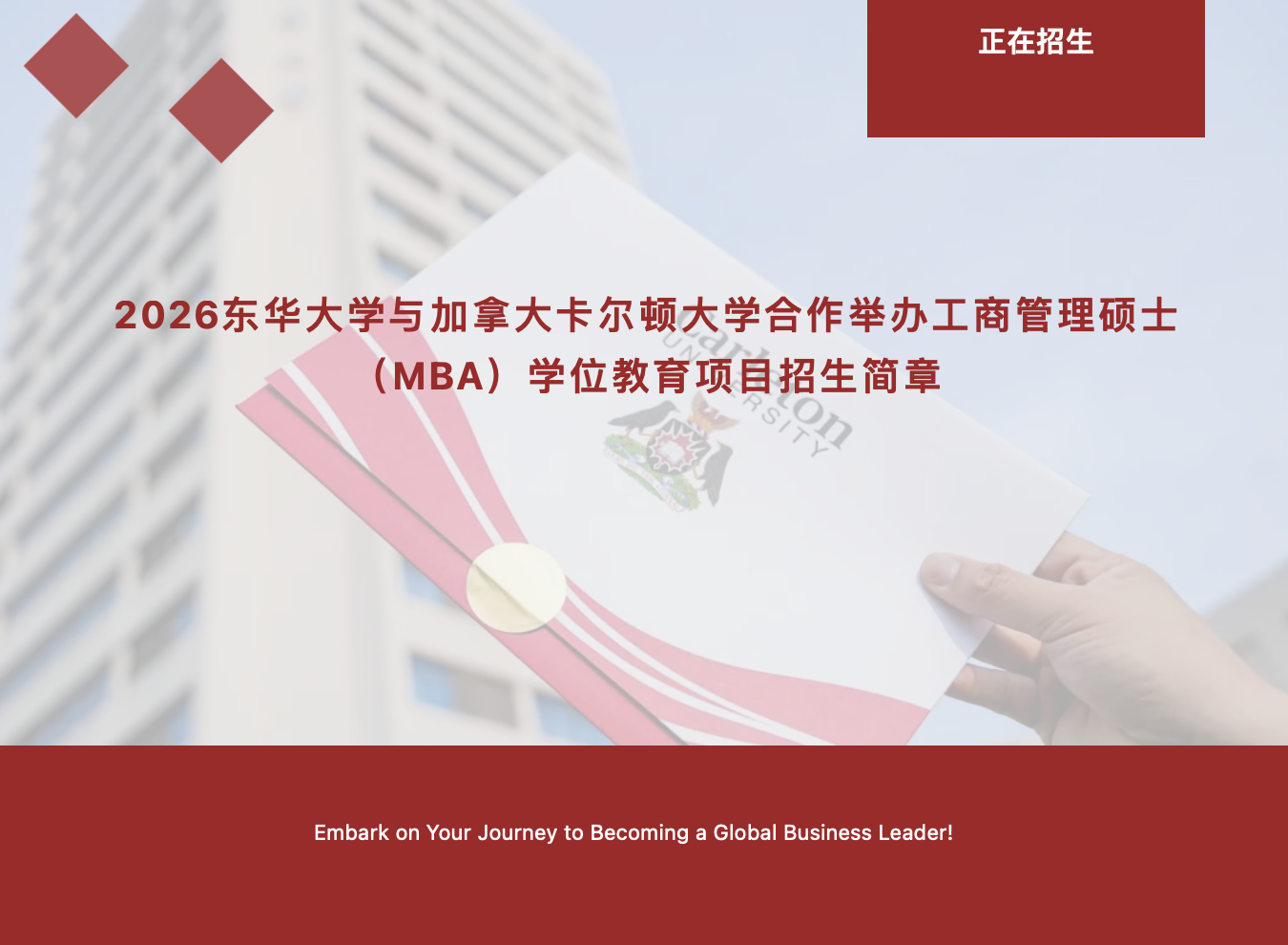 正在招生 | 2026东华大学与加拿大卡尔顿大学合作举办工商管理硕士(MBA)学位教育项目招生简章